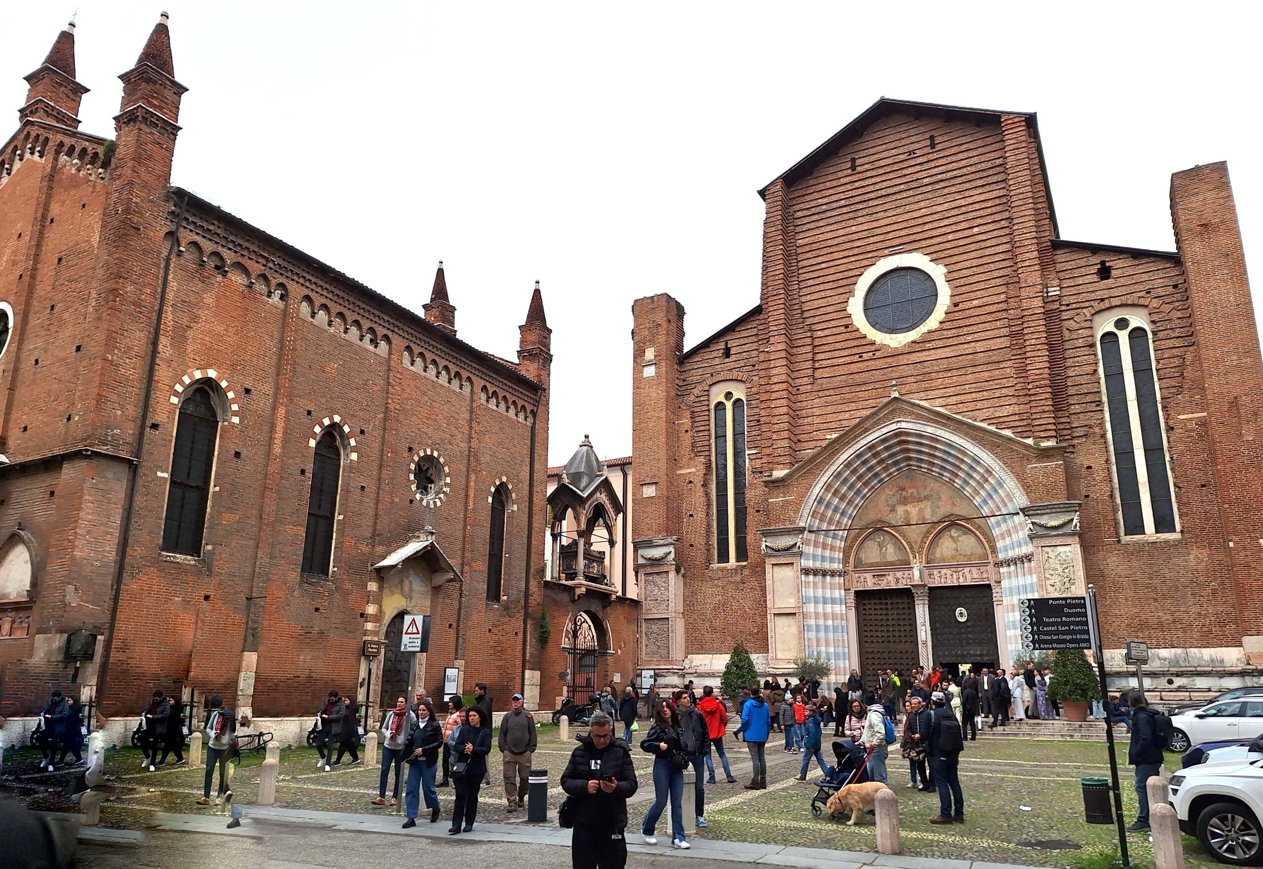 Die mächtige Chiesa Sant‘ Anastasia, größtes Gotteshaus Veronas, kann ich wegen einer Taufe nicht besichtigen. Auch der Domkomplex Duomo Santa Maria Matrocolare hat geschlossen.