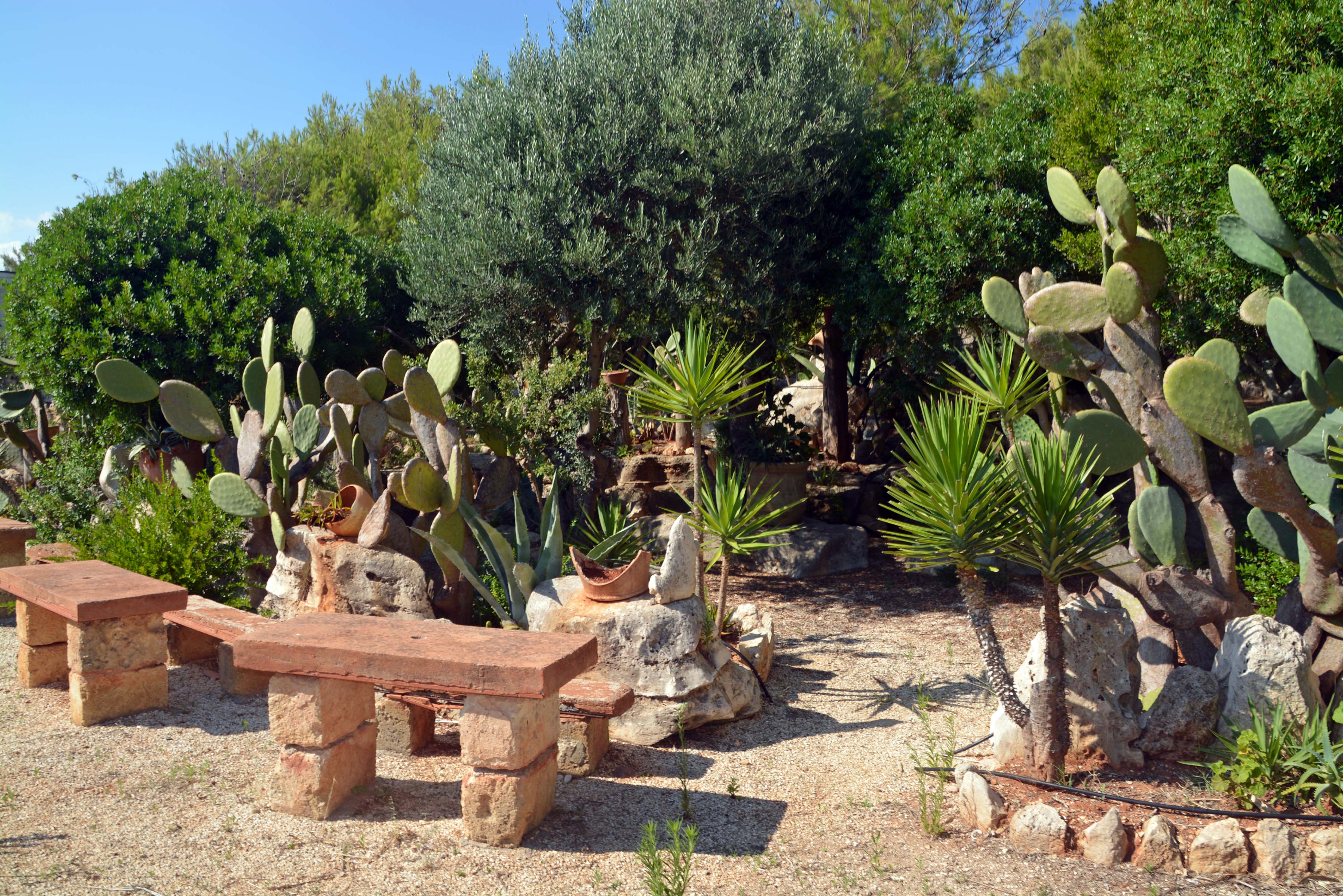 Am stahlblauen Himmel haben sich an einer Stelle hartnäckige Wolken gebildet, die ebenso schnell auch wieder verschwinden. Ich fahre fast direkt am ionischen Meer entlang, durch Gärten voller Opuntien-Kakteen, Feigenbäumen und leider auch wieder durch abgestorbene Olivenhaine. Jedes Mal, wenn ich das sehe, schüttle ich fassungslos den Kopf. Unterwegs halte ich immer wieder an -was hier fast überall möglich ist – um auf’s Meer zu blicken, die Küste zu bestaunen und inne zu halten, die Luft einzuatmen und das gesamte Paket zu genießen. Ganz großes Sonne-Meer-Kino! Überall führen Stichstraßen zu großen Parccheggi und herrlichen Stränden. An den Felsstränden fahren die Motorräder direkt bis vor das Meer! Leider, leider gibt es kaum Fotos, halten mit Fiete II ist an den schönsten Stellen unmöglich!!