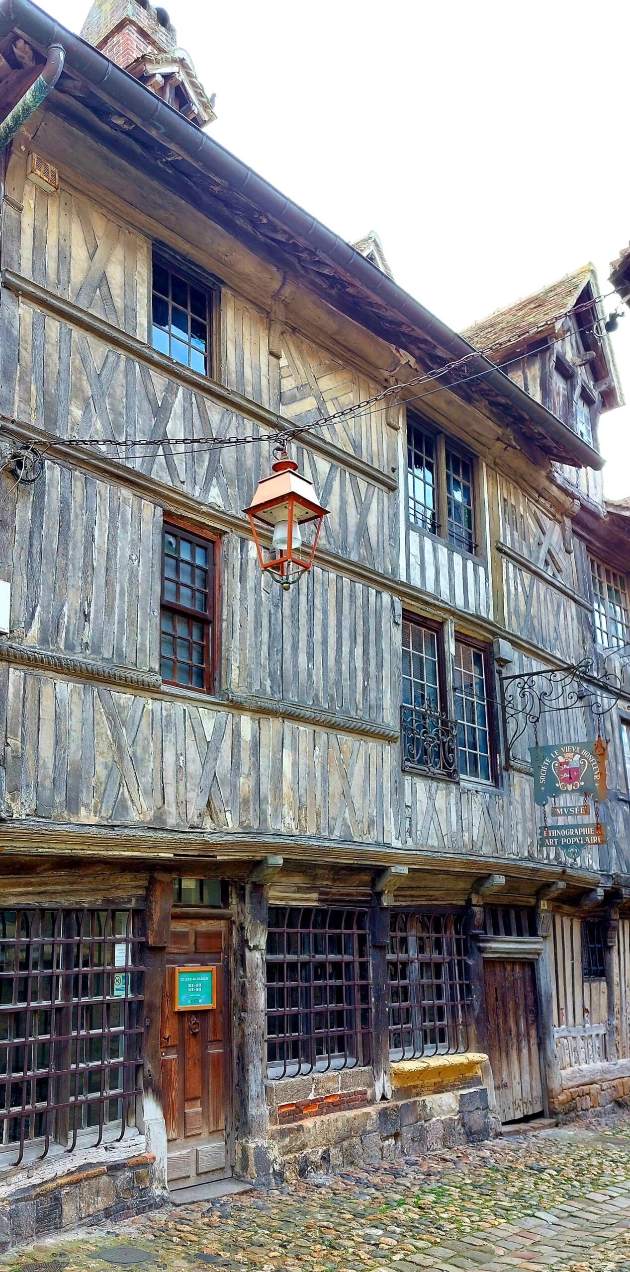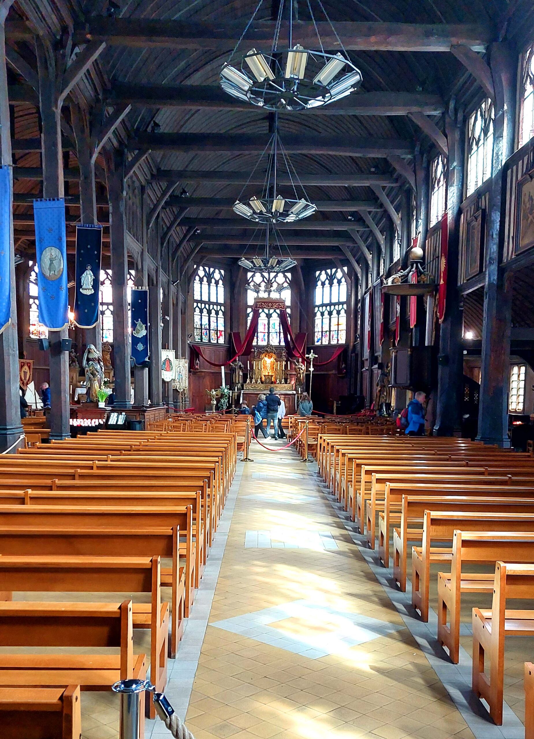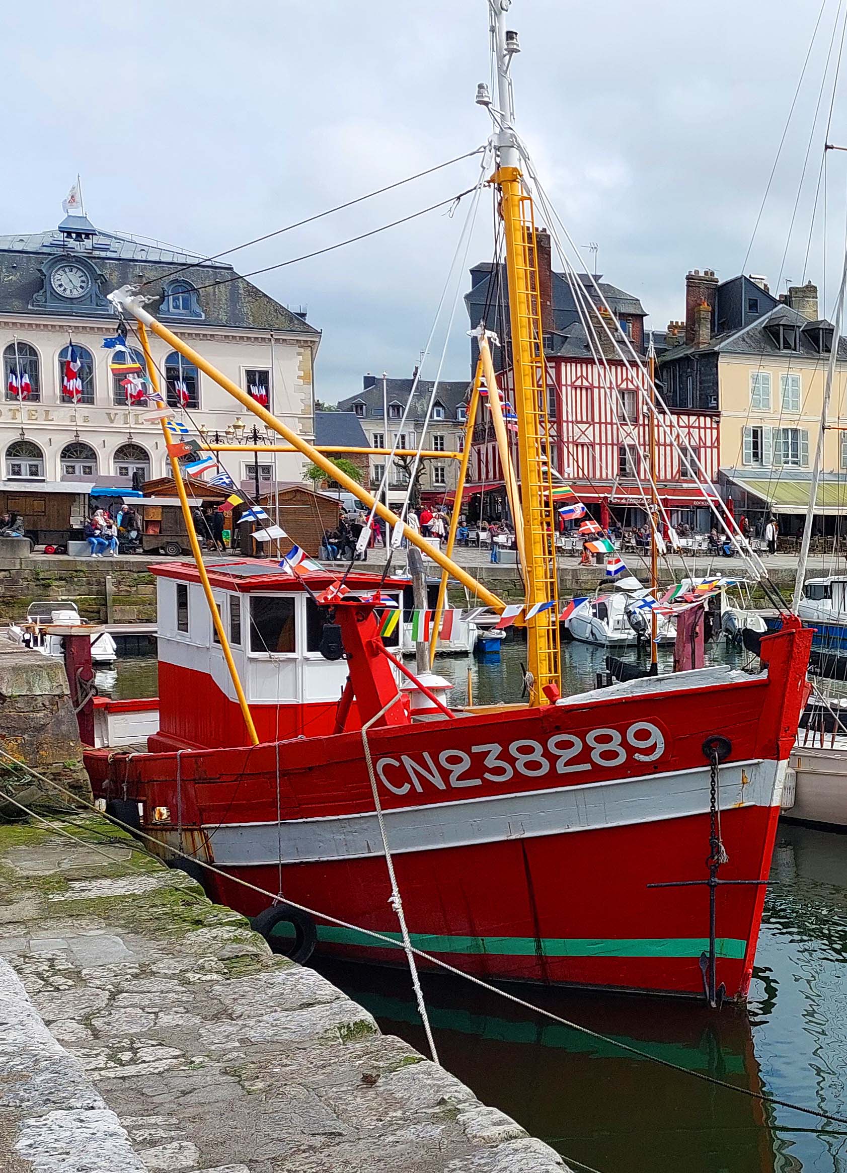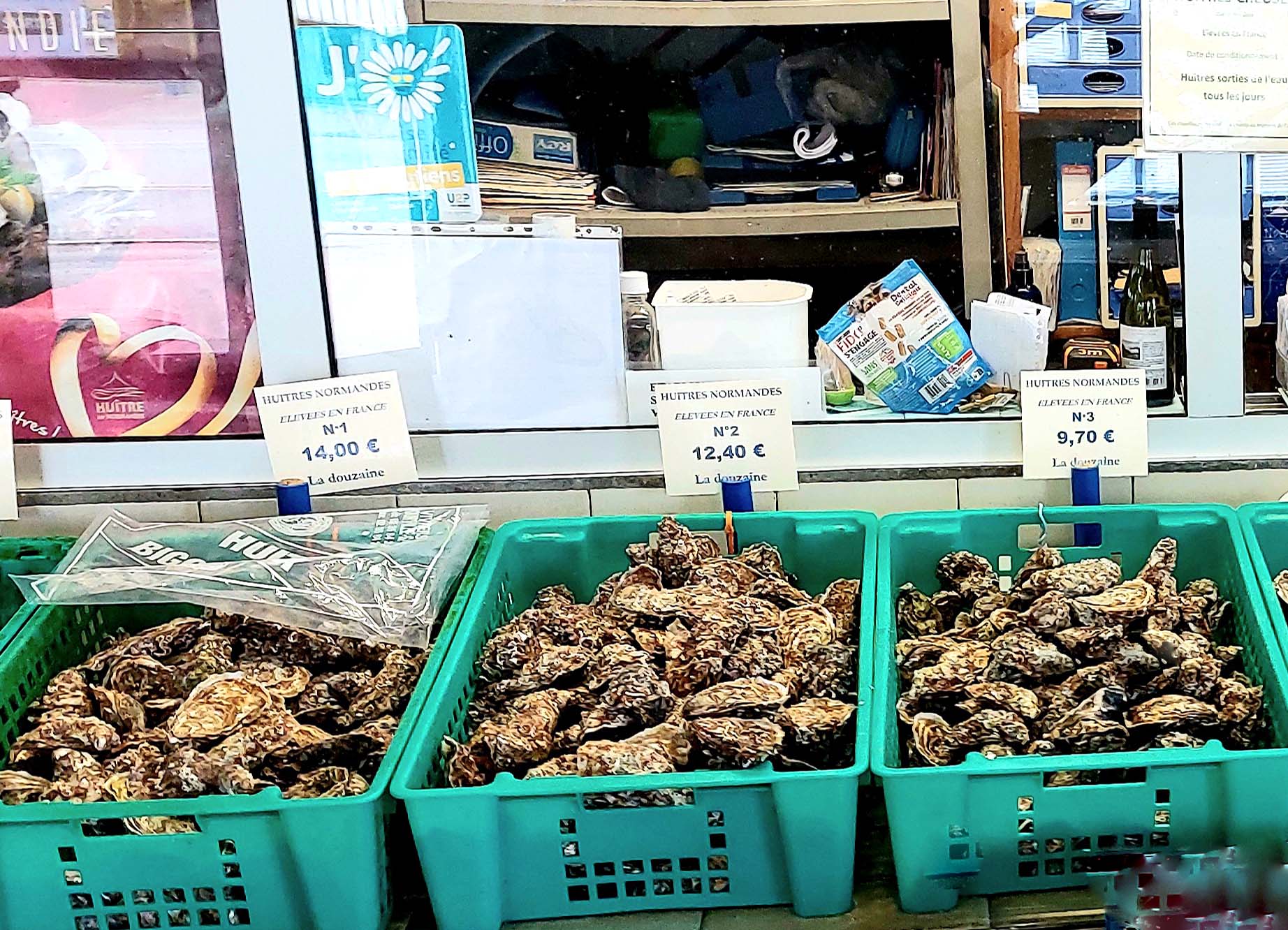 Fast überall laufe ich über Kopfsteinpflaster, vorbei an Bars und Gaststätten in Hülle und Fülle auf dem „Quai Sainte Catherine“. Fast überall gibt es Calvados-Läden und Caramel/Schokoladen-Shops. Es ist Maifest neben dem Porte de Caen, Teil des alten Stadttores. Hier nutze ich die Gelegenheit, um Austern und Wein zu schlürfen. Gegenüber liegt am Hafeneingang das älteste Gebäude der Stadt, das La Lieutenance. Und auf dem Weg zurück komme ich am über 760 Jahre alten Glockenturm von St.Catherine vorbei, der größten Holzkirche Frankreichs.