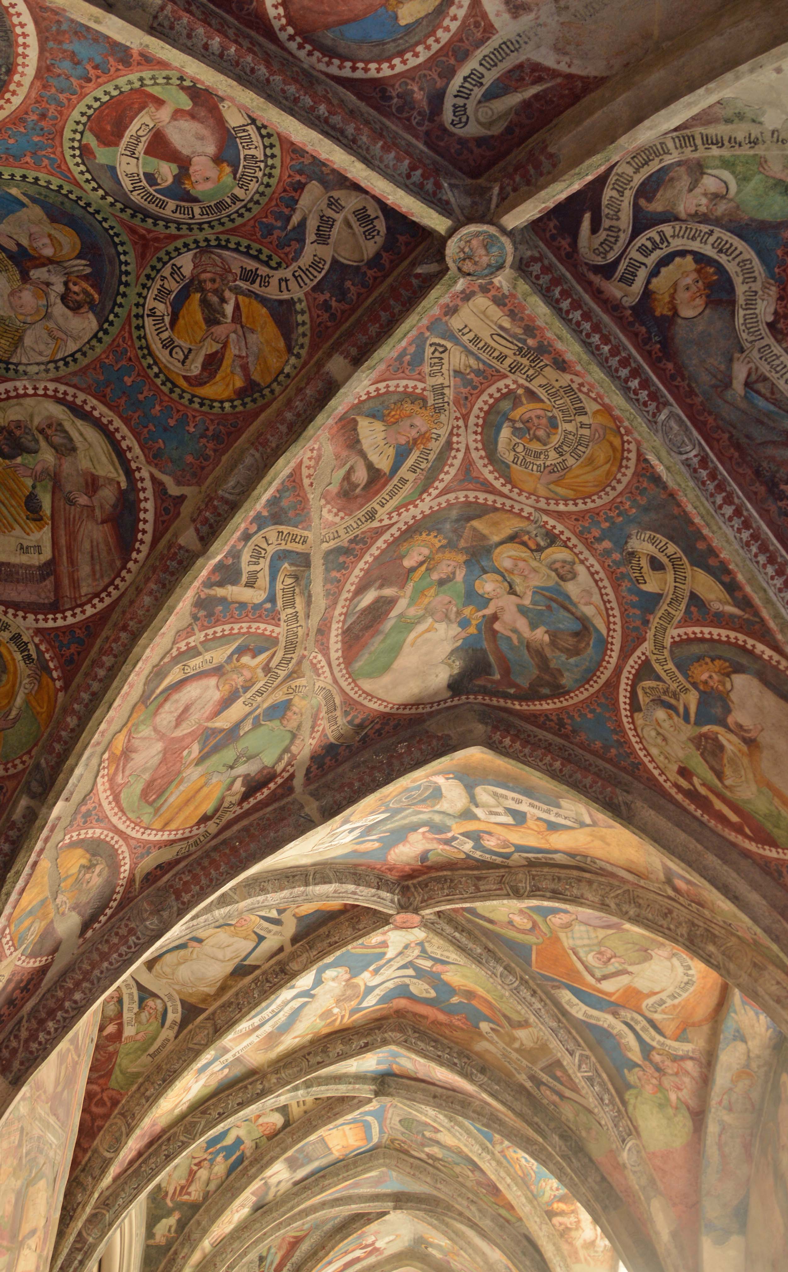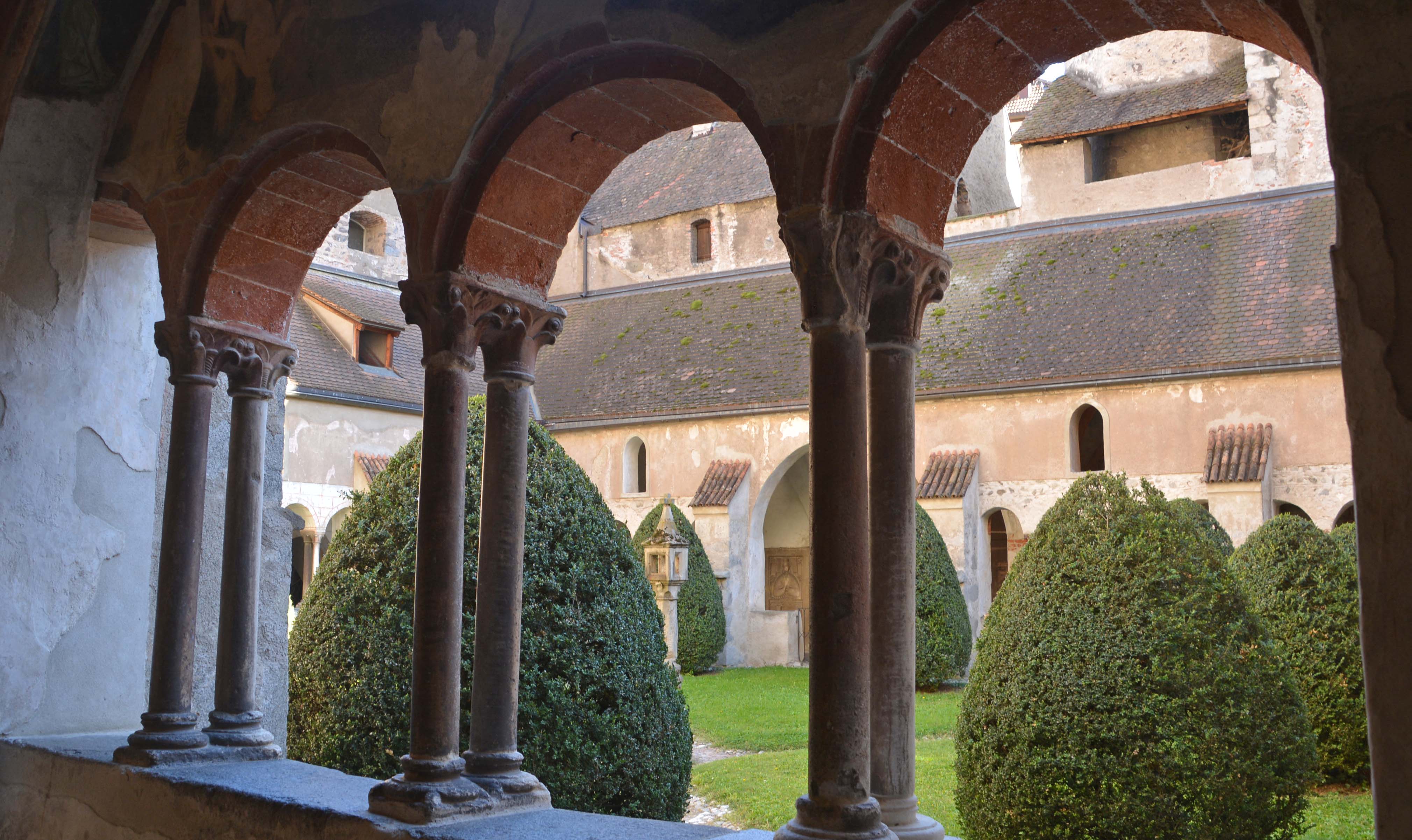 Mein Highlight aber ist der Brixener Dom ‚Mariä Himmelfahrt‘. Er stammt aus der Barockzeit und ist mit prunkvollem Marmor ausgestattet. Er steht an einer riesengroßen, rechteckigen Piazza, hat zwei Zwiebeltürmchen, einen überladenen, spätbarocken Innenraum, viel verschiedenfarbigen, eher dunklen Marmor, eine tolle Orgelempore und fantastische Deckengemälde. Die Nachmittagssonne lässt taucht die Kirche in ein wunderbares Licht. Der Brixener Dom-Kreuzgang zählt zu den größten Kunstschätzen Südtirols. 15 der 20 Arkaden sind mit Szenen des alten und neuen Testaments bemalt. Es herrscht strenges Fotografierverbot! Hatte ich vorübergehend vergessen.