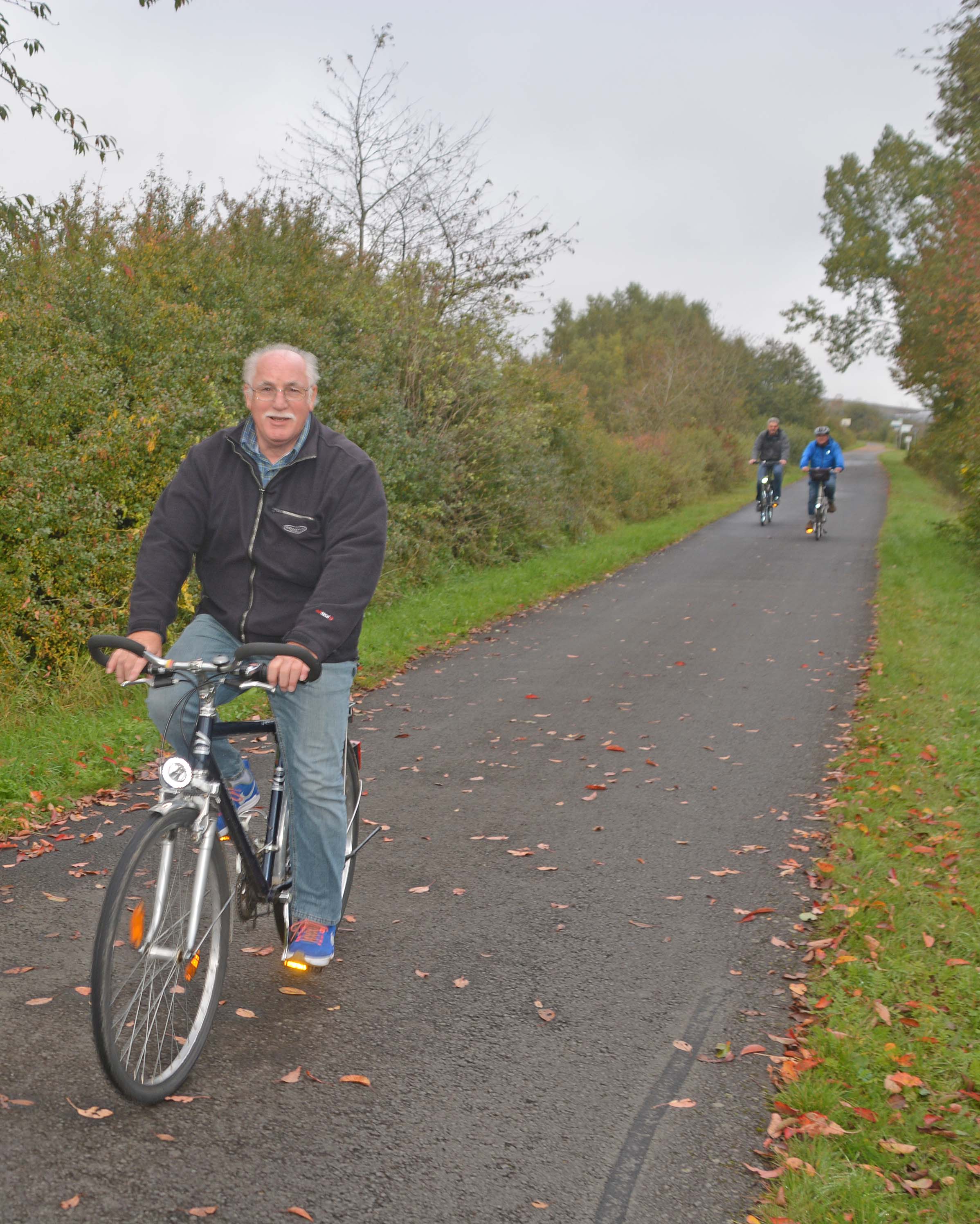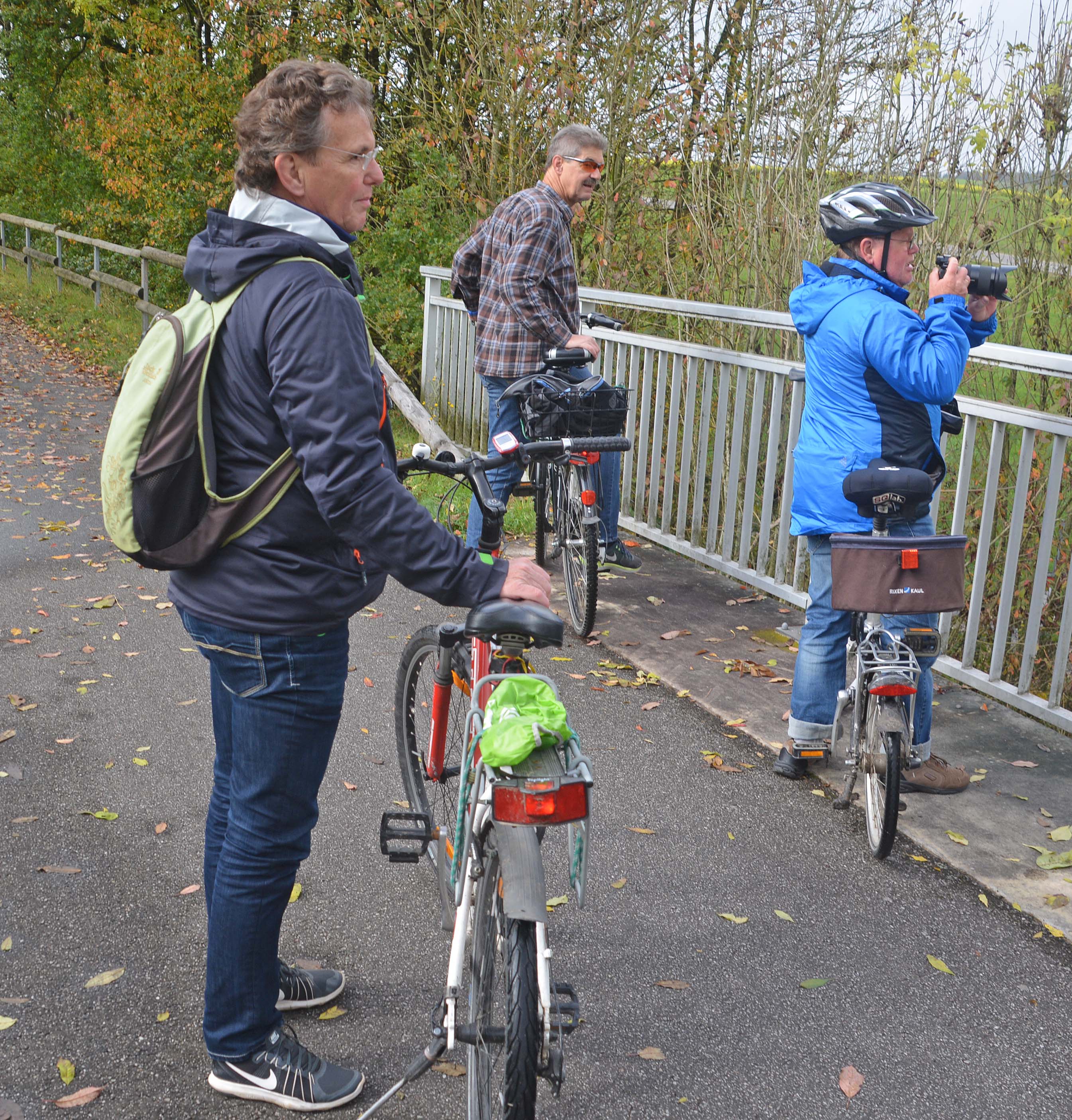 Wir haben 35 Kilometer vor uns und einige Steigungen. Nach kurzer Fahrradreparatur starten wir durch – bei Nebel und kühlen 9 Grad. Ich friere, weil ich Handschuhe und Schal in Erwartung der Sonne bei Fiete gelassen habe. Auch kräftiges Strampeln wärmt nicht viel. Ich mobbere leise,…… fahre ich doch freiwillig mit.