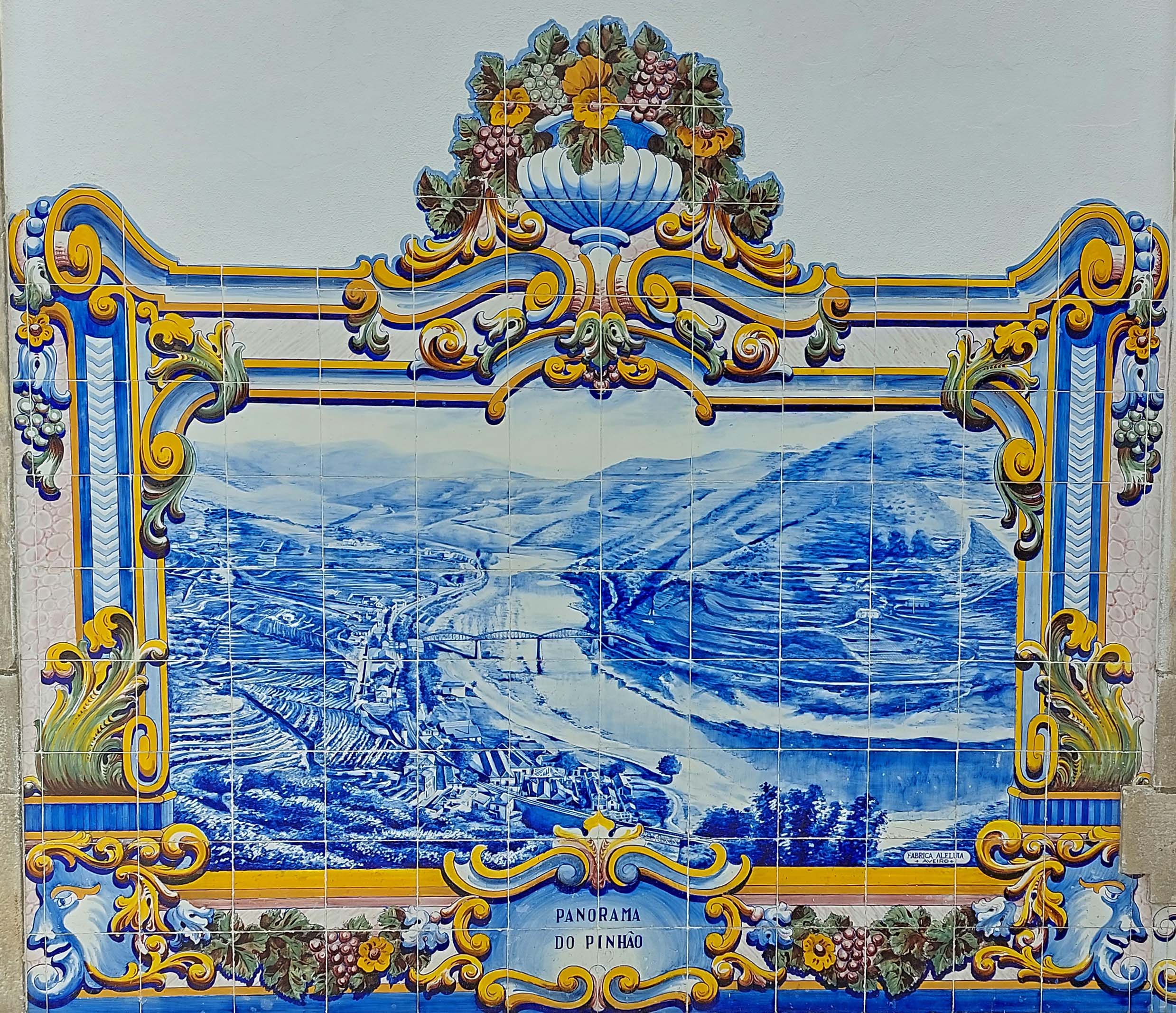 Ich besichtige noch den ungewöhnlichen Bahnhof mit seinen 24 historischen Kachelbildern, die vom Leben und der Gegend der Weinbauern erzählen. Ein blau-weißes Wunder.