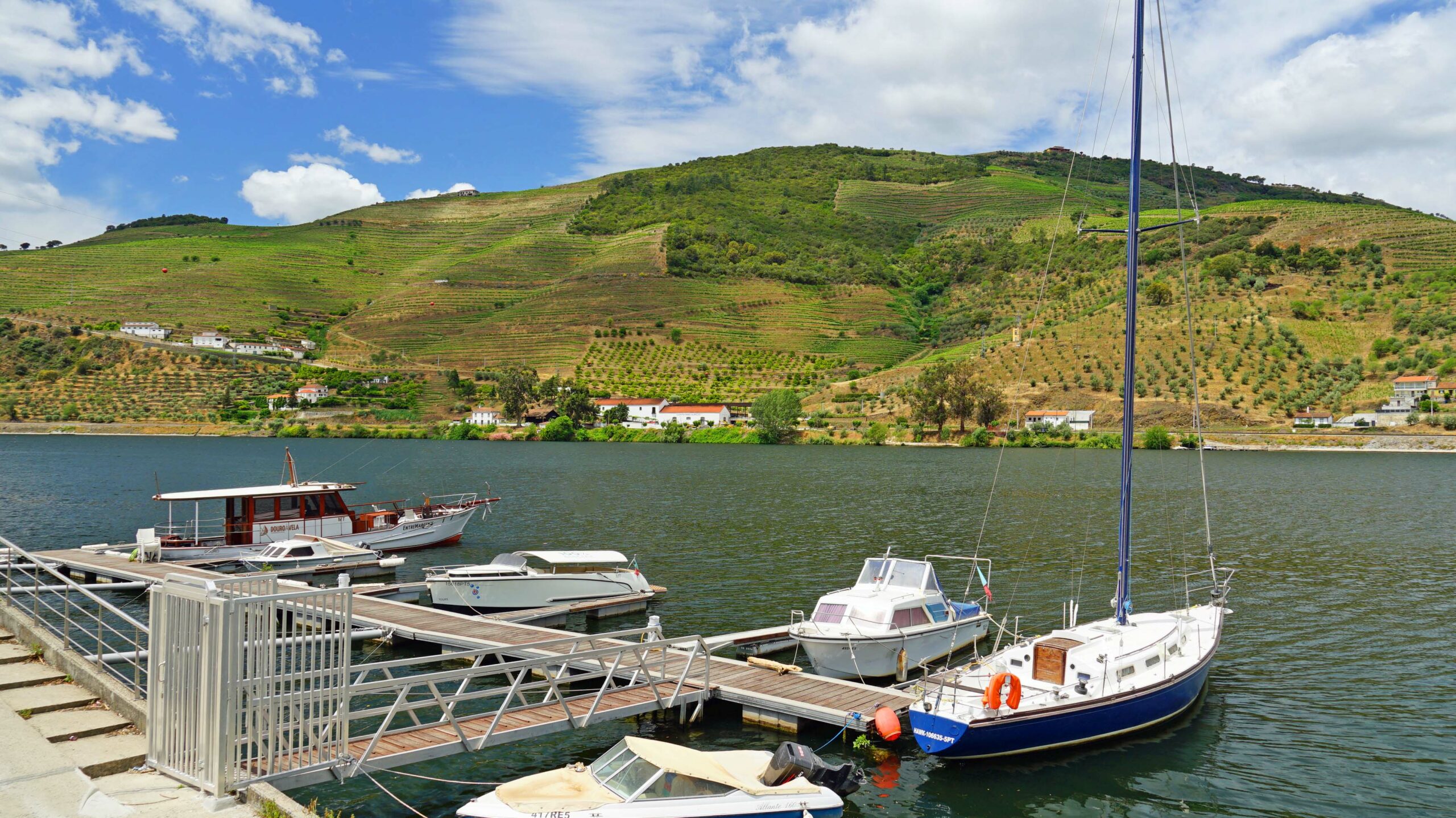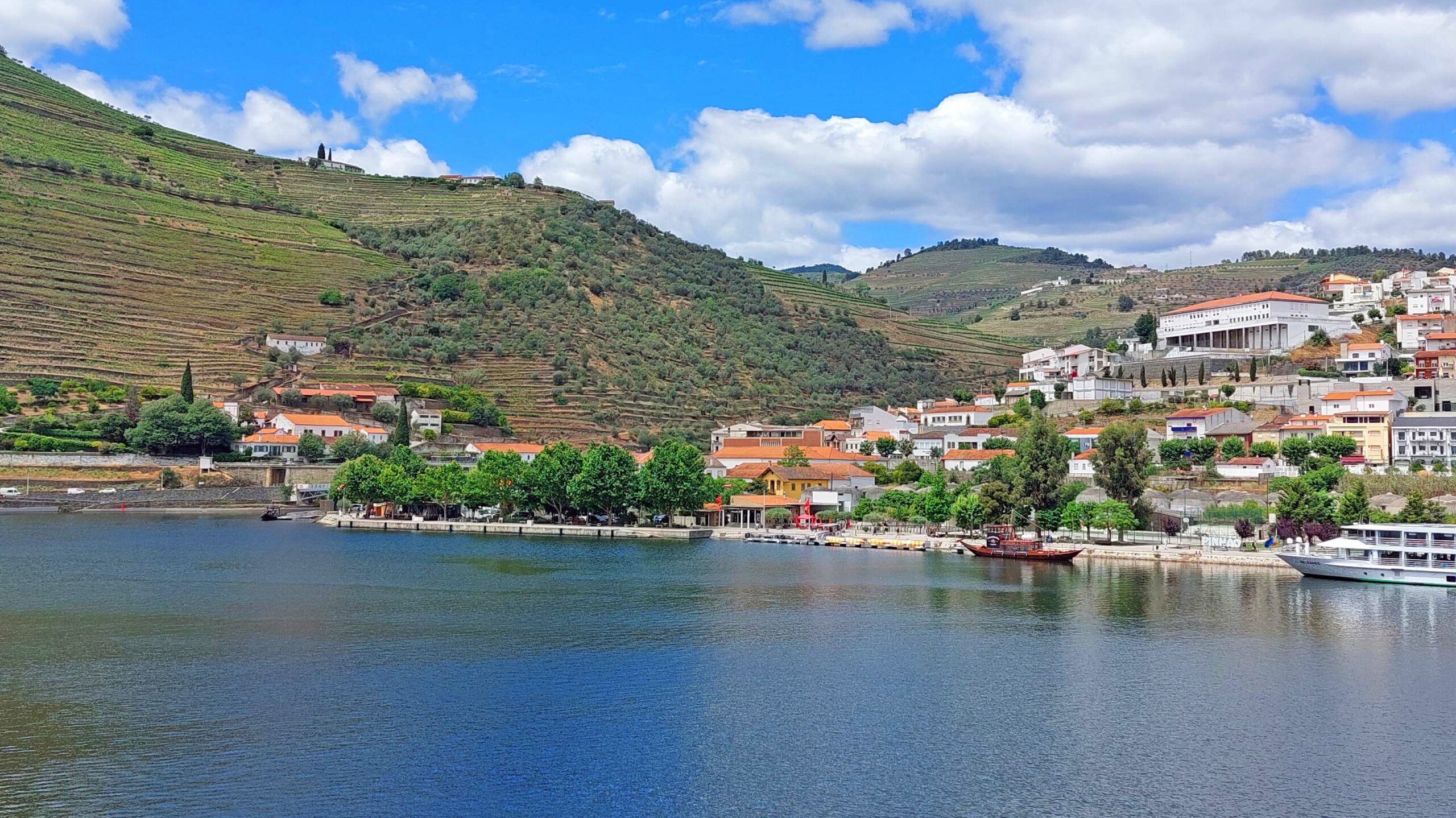 Die Gegend am Douro ist eine traumhafte Flusslandschaft. Von den 900 Kilometern fließt er 213 Kilometer durch Portugal und mündet bei Porto in den Atlantik. Ab und zu gleitet ein Rabelo vorbei – das typisch flache Boot, mit dem früher die Weinfässer nach Porto transportiert wurden. Etwa 50 Quintas – Weingüter – sind inmitten der Reben angesiedelt.
