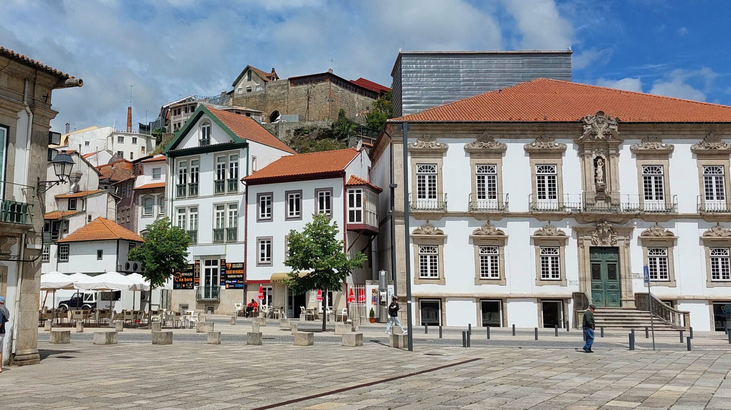 Ich laufe die Treppen wieder runter und kann das Ambiente nochmal in vollen Zügen genießen. Ich gehe die breite Avenida zur Kathedrale von Lamego, die ihren Platz im Zentrum des Ortes hat. Auf mich wirkt das Gotteshaus etwas düster. Die Sé (1129) besitzt im Innern wundervolle Dachfresken mit Szenen aus dem Alten Testament und eindrucksvolle Altäre. Mit der Kirche ist ein Kloster aus der Zeit der Renaissance mit einem schönen Kreuzgang verbunden.