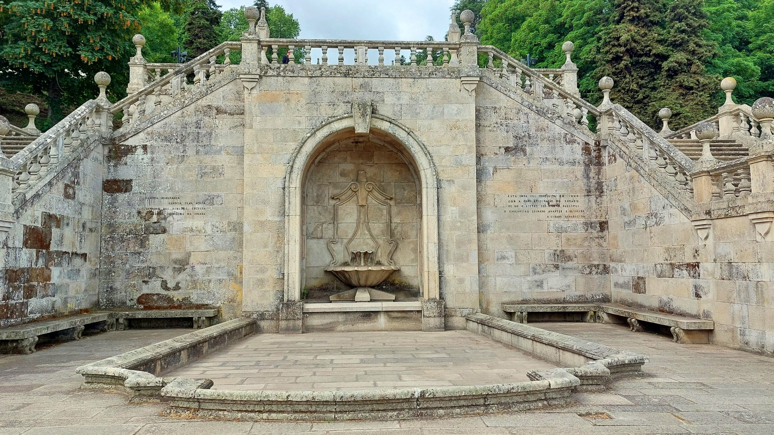 Lamego liegt mir zu Füssen. Immer wieder drehe ich mich um, um den sagenhaften Ausblick auf die Stadt zu bewundern. Den Aufstieg über die Stufen scheint der ‚gewöhnliche Touri‘ offensichtlich nicht zu mögen! Mir begegnen davon nur wenige. Die mächtige Wallfahrtskirche schaut hinab auf den ‚Hof der Könige‘ mit einem 14 Meter hohen Obelisken, 18 Statuen und einem ungewöhnlichen Granitbrunnen. Das Innere des Gotteshauses ist schlicht gehalten.