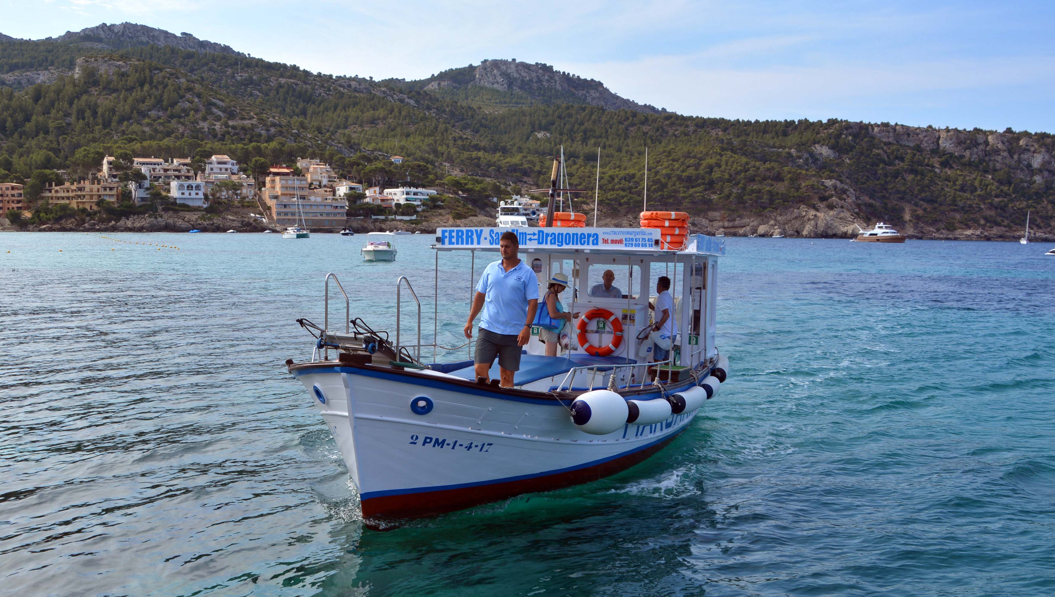Kapitän Pep legt fast stündlich am Hafenkai mit seiner Margarita ab und tuckert jeweils 20 Neugierige über den 780 Meter breiten Canal des Freu ins ‚Reich der Drachen‘. Nach 20 Minuten legt er im Naturhafen Cala Llado, der sogenannten Räuberbucht, an und spukt seine Fracht aus.