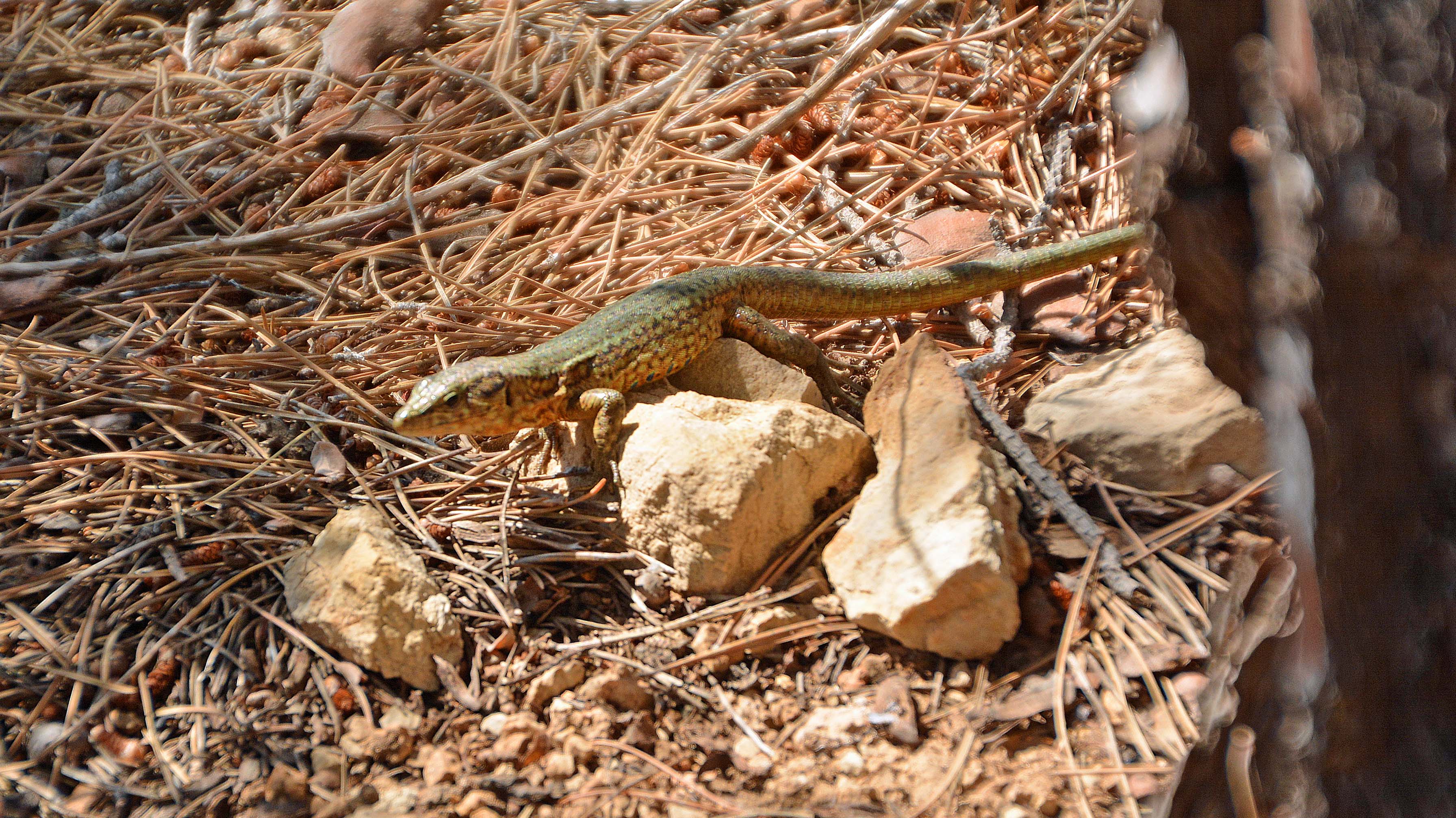 Dragonera kommt vom mallorquinischen Dragó, und bedeutet Echse. Den Namen erhielt das Eiland erstens aufgrund seines Aussehens, dass einem schlafenden Drachen ähnelt und aufgrund der tausendfach (wirklich!!!) hier lebenden Eidechsen. Hmmm, wir befinden uns also auf gefährlichem Gebiet.