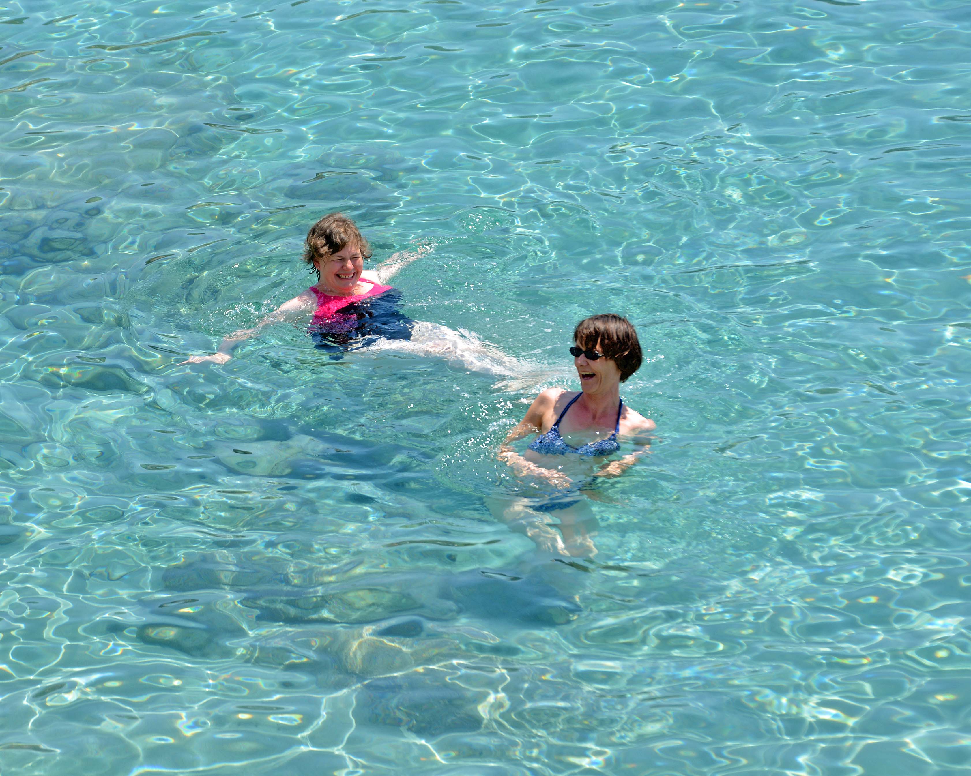 Auf dem Rückweg zum Hafen begegnen uns immer mehr Touris. Hier angekommen gelüstet es uns nach einem Bad im kristallklaren Wasser der kleinen Bucht. Wir schlagen unser Lager auf dem steinigen Strand auf und nehmen kleine Snacks zu uns.
