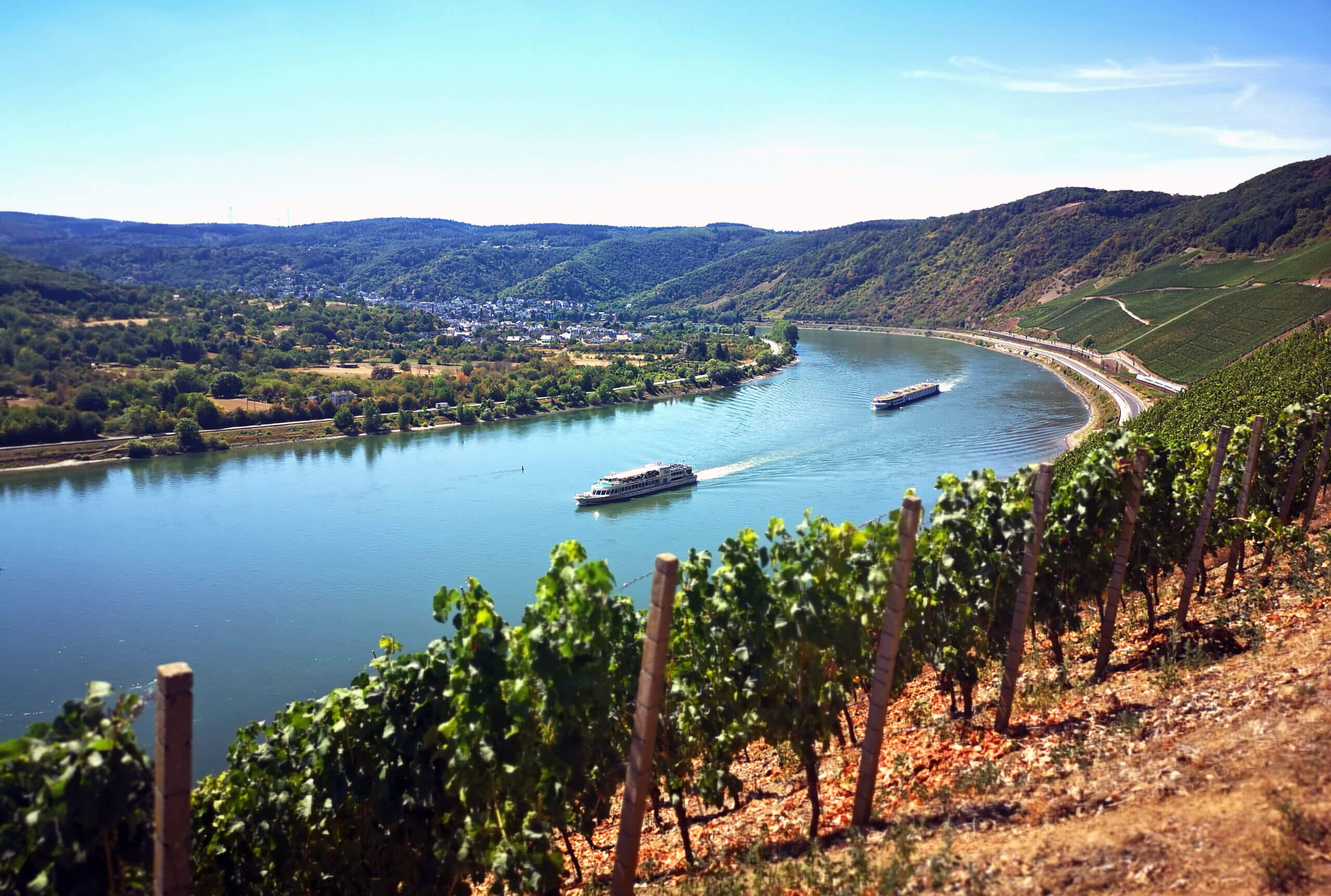 Der Bopparder Hamm liegt zwischen Boppard und Spay und ist die größte zusammenhängende Weinanbaufläche am Mittelrhein. Schon die Römer haben hier Wein angebaut! Der Fluss ändert genau hier seine Richtung in einer doppelten S-Kurve zweimal um fast 180 Grad. Das bedeutet, der Rhein fließt in der einen Richtung an dem Städtchen Boppard vorbei und nach einem engen Bogen in entgegengesetzter Richtung zurück. Und diese Schleife wird durch den mächtigen Felsstock Bopparder Hamm verursacht. Die Weinberge dominieren die ausladende Rheinbiegung. Die Südlage hat einen idealen Neigungswinkel zur Sonne, nutzt die Wasserfläche des Rheins als Wärmespeicher und ist sowohl von Westen durch den Hunsrück als auch von Osten gut geschützt, was durch ein mediterranes Kleinklima begünstigt wird. Beste Voraussetzung für den Anbau hochwertiger und oft prämierter Weine. Die Reben haben teilweise eine Steillage von bis zu 80%. Unbestrittener Star unter den angebauten Reben ist der Riesling.