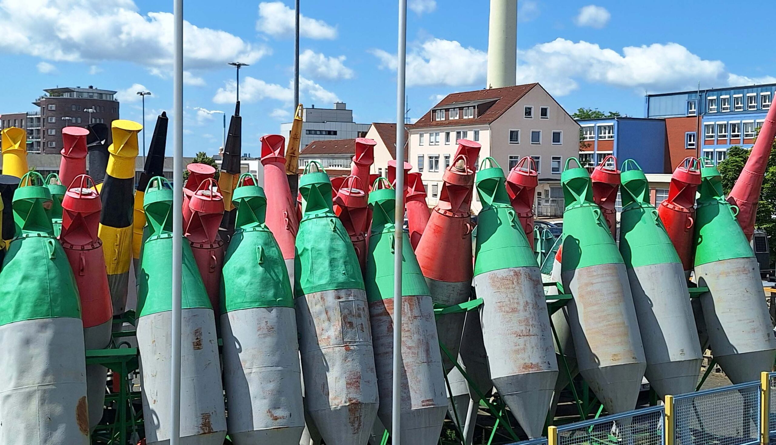 Die Kinder wollen zuerst an die Kennedy-KlappbrĂŒcke, die bei uns um die Ecke ĂŒber die Doppelschleuse fĂŒhrt. Hier âkieken wir Schiffeâ und warten, und warten, und warten. đ€·đ€·ââïž Endlich sind Autos und FuĂgĂ€nger an der Reihe. Wir entdecken auf dem Weg Richtung âAlter Hafenâ eine Menge Bojen, die hier auf Halde liegen. Und wir sehen den Bergungsschlepper âSeefalkeâ, ein ehemaliges Fischereischutzboot der Deuten KĂŒstenwache. Das heutige Kulturdenkmal liegt seit 55 Jahren im Museumshafen/Alten Hafen.