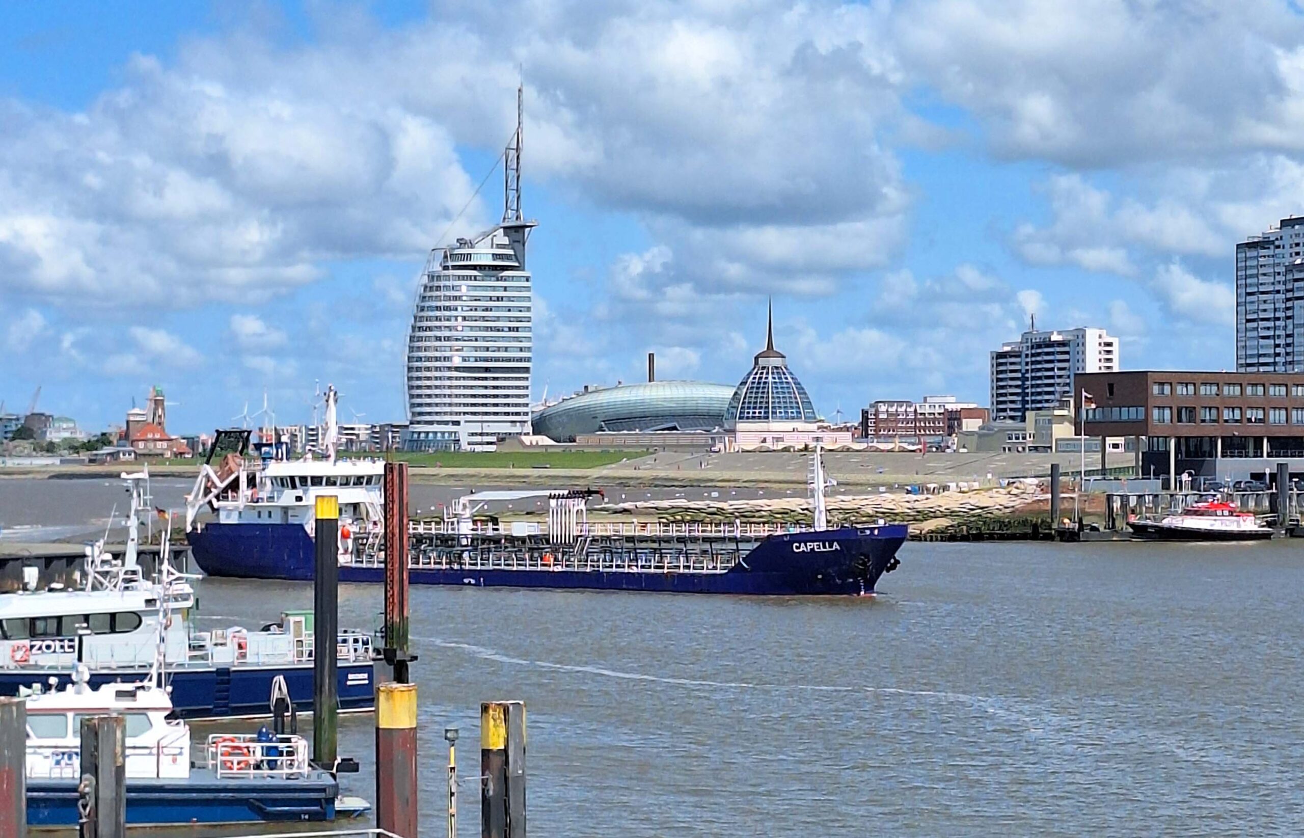 Gleich nebenan am Weserdeich steht das Wahrzeichen Bremerhavens, das 147 Meter hohe Atlantic Hotel Sail City. Von der eintrittspflichtigen Aussichtsplattform hĂ€tte ich einen atemberaubenden Panoramablick ĂŒber die Stadt đïž und die HĂ€fen â. Leider, hatten die Kids keine Lust dazu, was ich gut verstehen kann. Als Kind hat mich das auch nicht interessiert.
