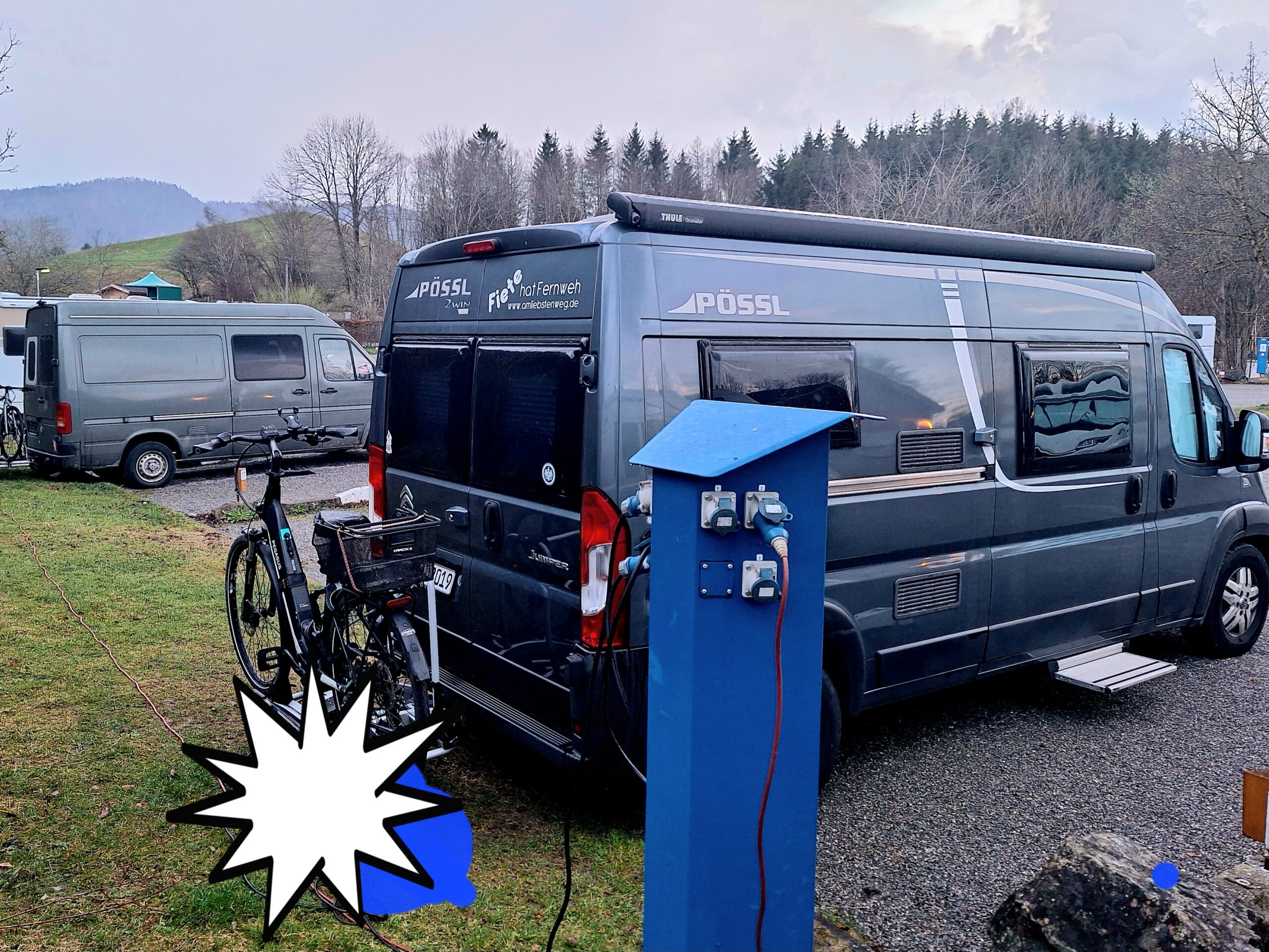 Es nieselt leicht und ist kühl. Fülle den Kühlschrank, tanke Frischwasser und richte die Antenne aus. Es folgt ein gemütliches Abendessen bei chilligem fernsehen. 📺 Gut geht’s los!👍