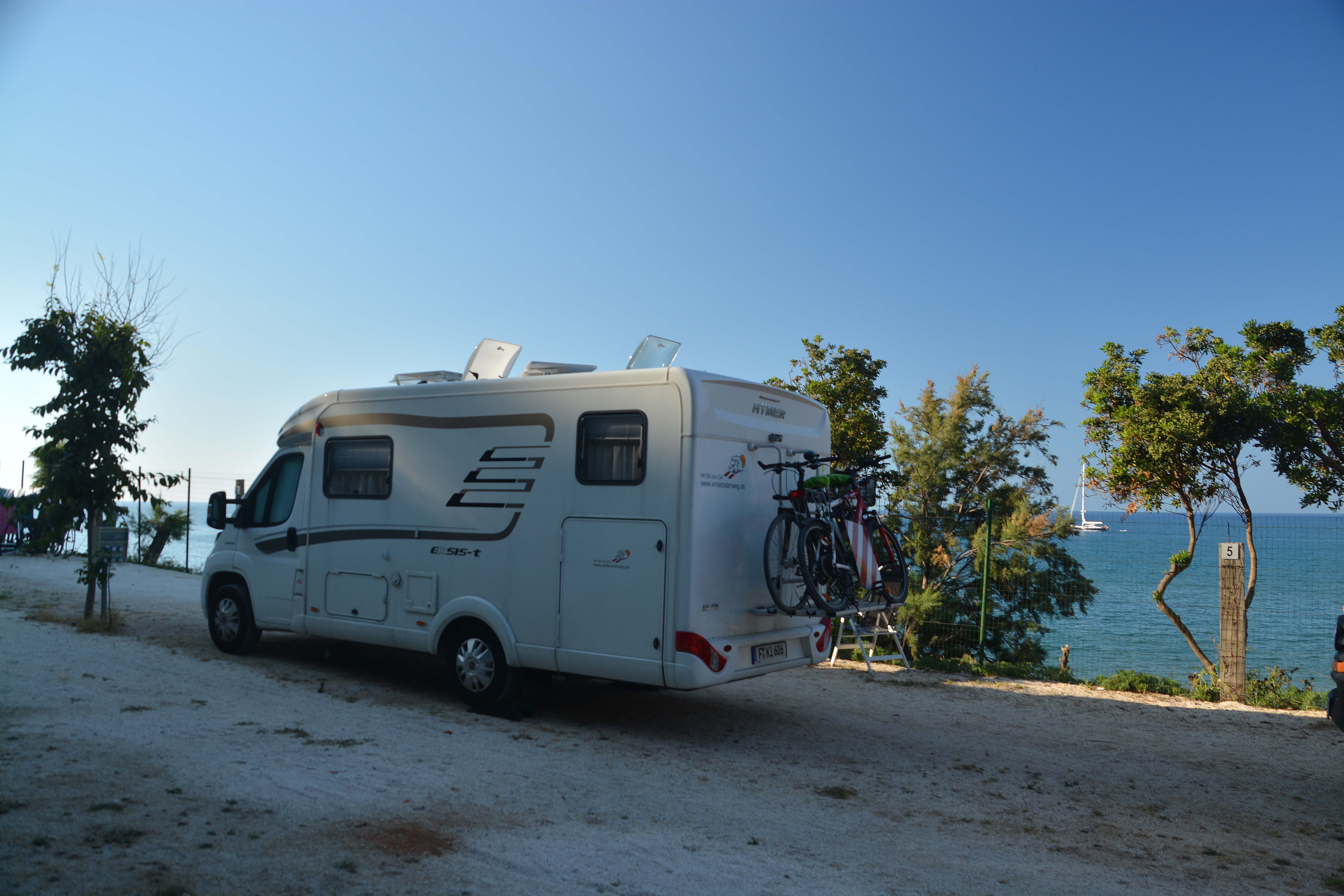 Den Morgen mit dem phänomenalen Blick auf den Golfo del Castellamare von unserer Womo-Terrasse genießen wir diesmal früher als sonst. Wir richten unsere Stühle so aus, dass wir beide beobachten können, was im türkisblauen Wasser und am Sandstrand alles passiert.