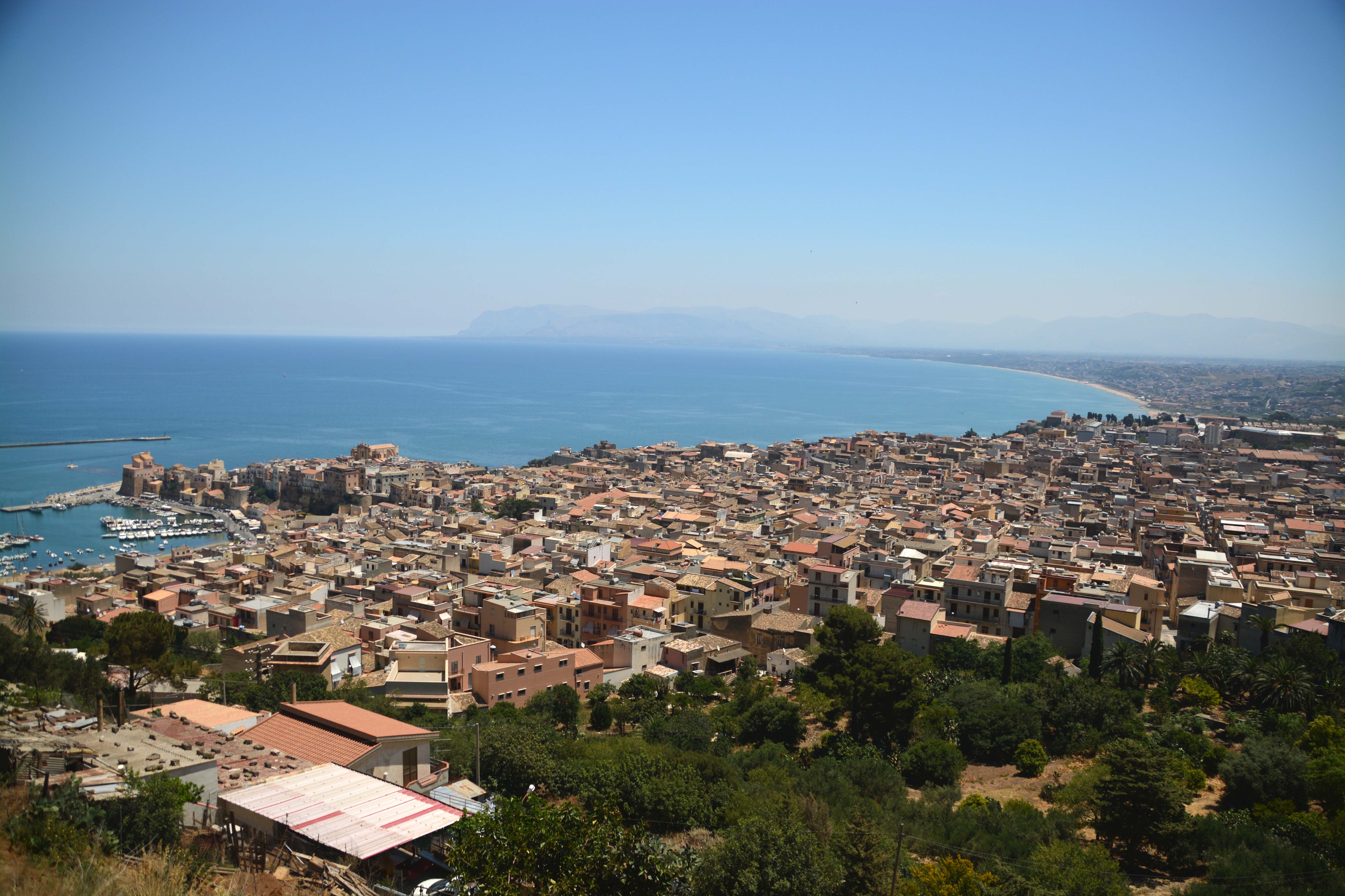 Der Acsi-Campingführer schlägt den ‚Lido Valderice Camping‘ vor. Es geht ca. 35 Km quer zum Capo San Vito entlang, wir entdecken Marmorsteinbrüche und fahren durch hügeliges Wein- und Obstanbauland. Der Platz liegt am Meer, durch eine Straße getrennt, ist felsig, von sizilianischen Dauercampern geprägt und nicht empfehlenswertem Wasserzustand. Wir sind die einzige Touris.