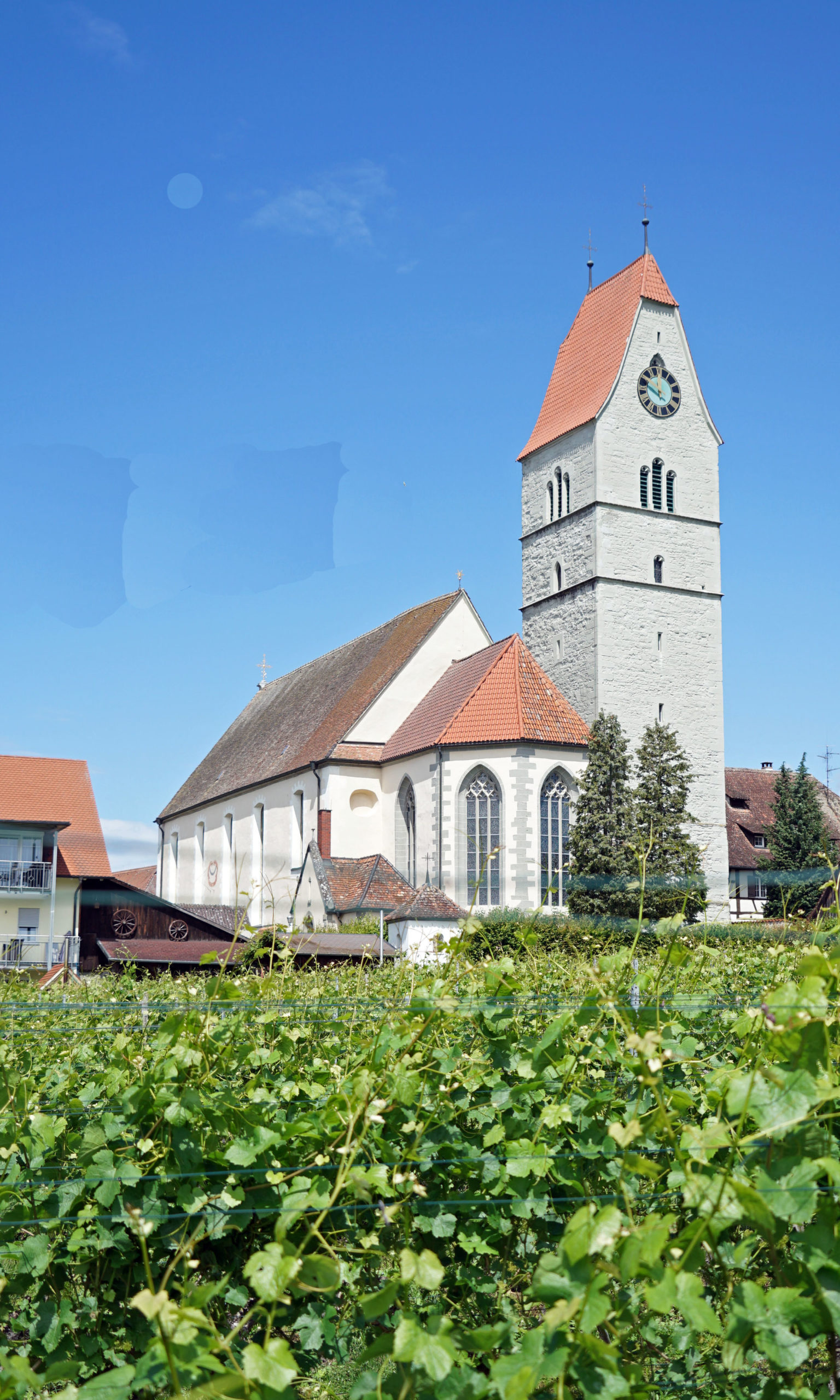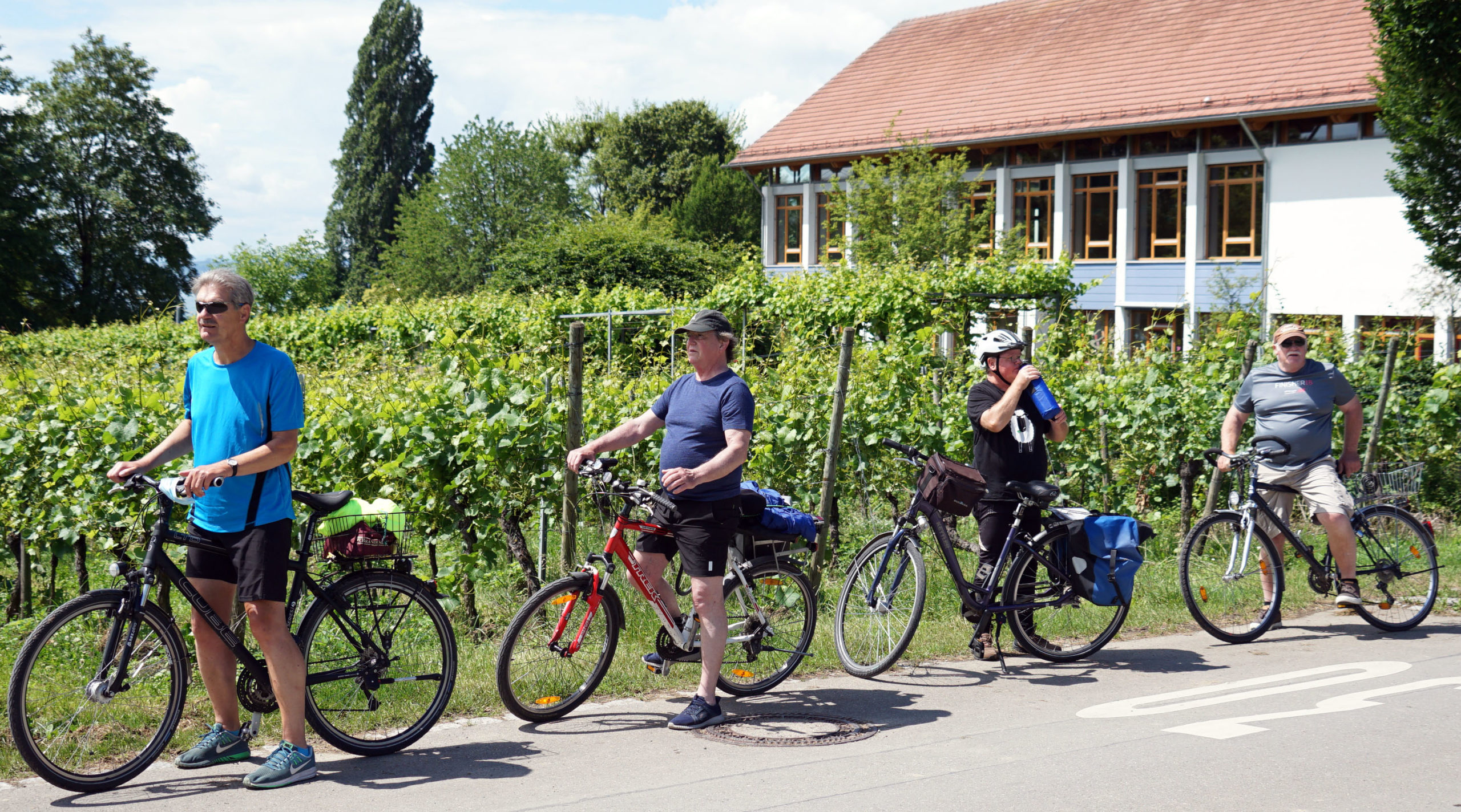 Heute haben wir zwei Aussteiger auf der Tour, die sich anderweitig vergnügen. Die restlichen sechs Biker starten wie gewohnt vom Campingplatz. Mit der Autofähre geht es zunächst wieder nach Meersburg. Wir lösen ein Kombiticket, weil wir in Friedrichshafen noch auf die schweizerische Bodenseeseite schippern. Nach einem kurzen Rundgang durch Meersburg schwingen wir uns auf die Räder. Von Meersburg nach Hegnau gibt es Weinberge soweit das Auge reicht und wir haben immer wieder schöne Blicke auf den See. Bei Immenstadt wechselt das Bild und wir sehen viele Obstplantagen.